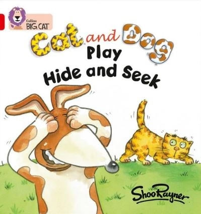 CAT AND DOG PLAY HIDE AND SEEK - BIG CAT 2A RED A Shoo Rayner's comic duo play hide and seek, with hilarious consequences, in this lively story with a predictable structure and patterned language. Where is Cat? Dog is looking in all the wrong places: under the table, behind the chair. Finally, Cat's whereabouts become apparent when Dog switches on the light. Red A Band 2A books offer predictable text with familiar objects and actions, combined with simple story development. Text type