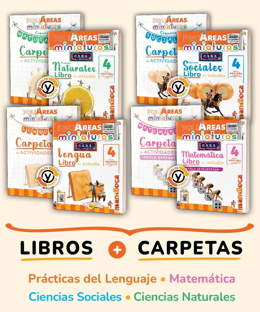 POLIÁREAS MINIATURAS 4 CABA - 4 TOMOS Organizado para su uso múltiple. LIBRO CARPETA de estudio de las cuatro áreas Lengua, Matemática, Cs. Sociales, Cs. Naturales . SOBRE LOS CONTENIDOS Lengua Textos literarios y no literarios de distintos géneros y tipos textuales. Teoría literaria. Información y actividades sobre el género literario del capítulo. Lectura Comprensiva LeC . Actividades organizadas por niveles de lectura. Ventanas especiales. Educación Digital, Educación Sexual I