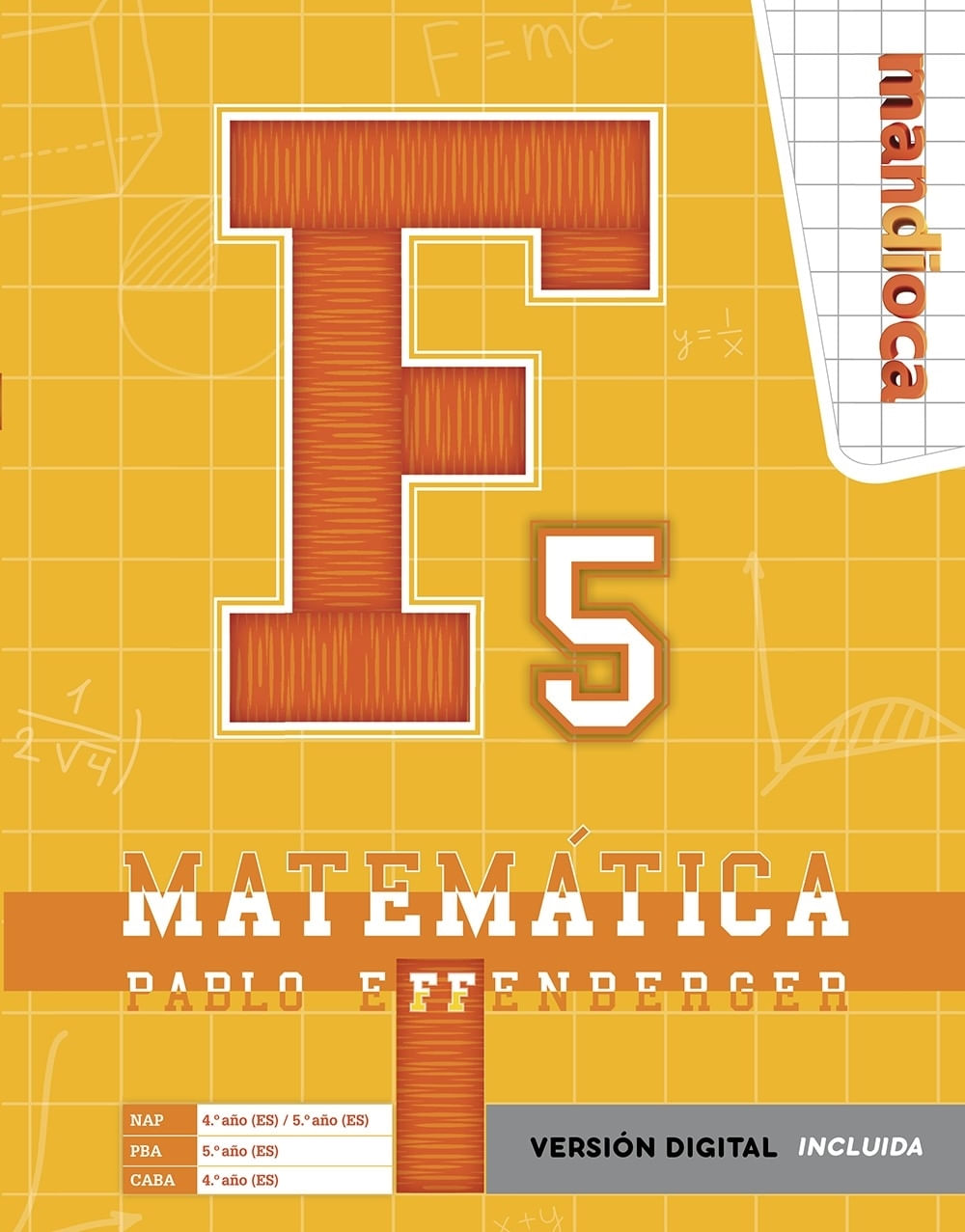 MATEMATICA F5 - ES 4 ES 5 DOS propuestas A - B en el mismo libro: A- En el cuerpo principal, se presentan y desarrollan los contenidos de cada año de la siguiente manera: Definiciones, clasificaciones, procedimientos y ejemplos que facilitan la comprensión de los temas. Registro de avance con preguntas básicas que permiten evaluar la comprensión de la teoría. Conexiones de contenidos de Matemática con saberes de otras áreas. Actividades relacionadas de manera secuencial. Prue